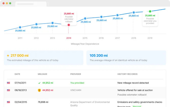 Exclusive access to the mileage database to inform you about possible mileage discrepancies.