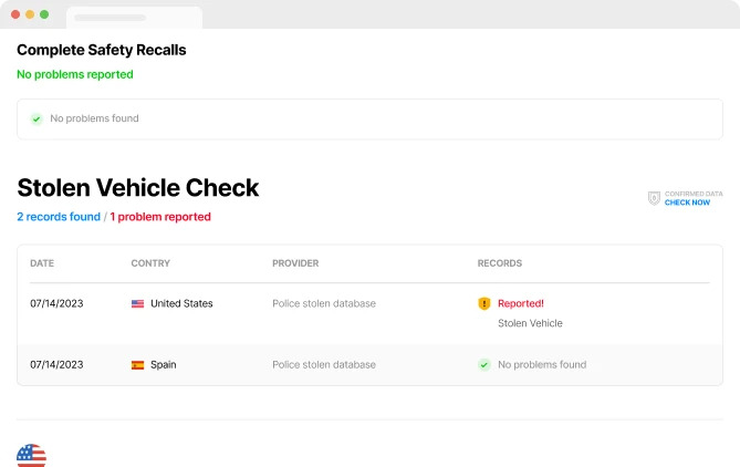 Theft Vehicle Check, Has the car been registered as a stolen vehicle?